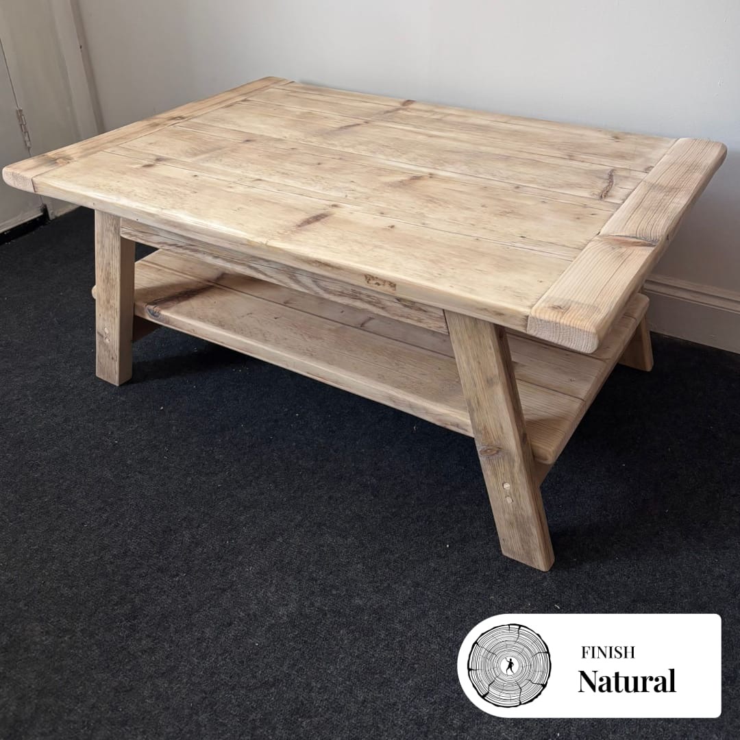 Handcrafted in our workshop, the Glenfield is a rustic coffee table handmade from locally sourced reclaimed pine wood. A look that combines a farmhouse barn style with Scandinavian design that will accentuate the look of any living room. Featuring breadboard style end pieces. Using our genuine reclaimed timber that is brimming with individual character and charm, creating that unique piece. Handmade to order.
