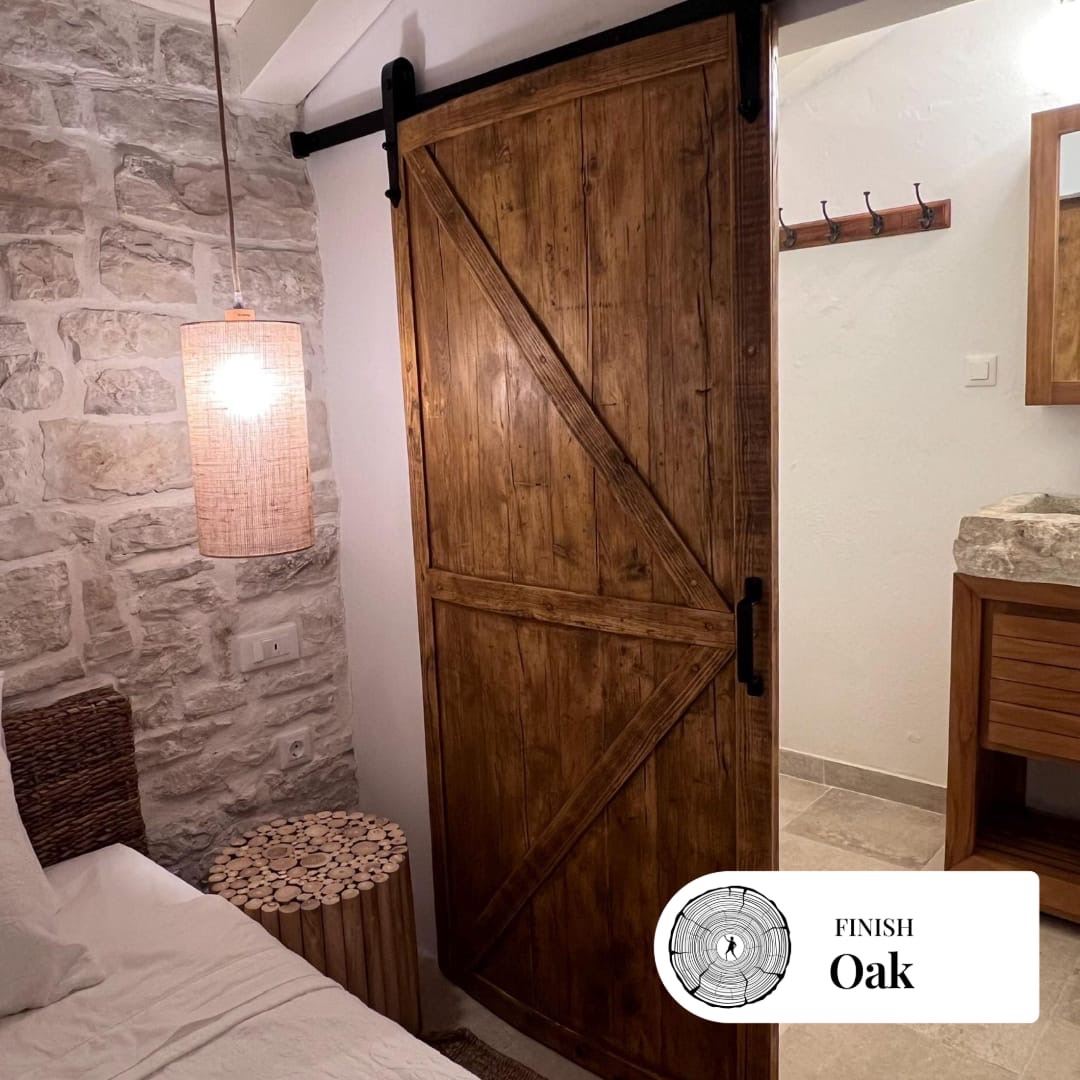 The Harefield is a rustic sliding door with authentic farmhouse feel, which boasts natural imperfections like knots, weathering, and unique grain patterns, adding individuality and character to your piece. Prices are dependant on the rail size you require. Handmade to order.