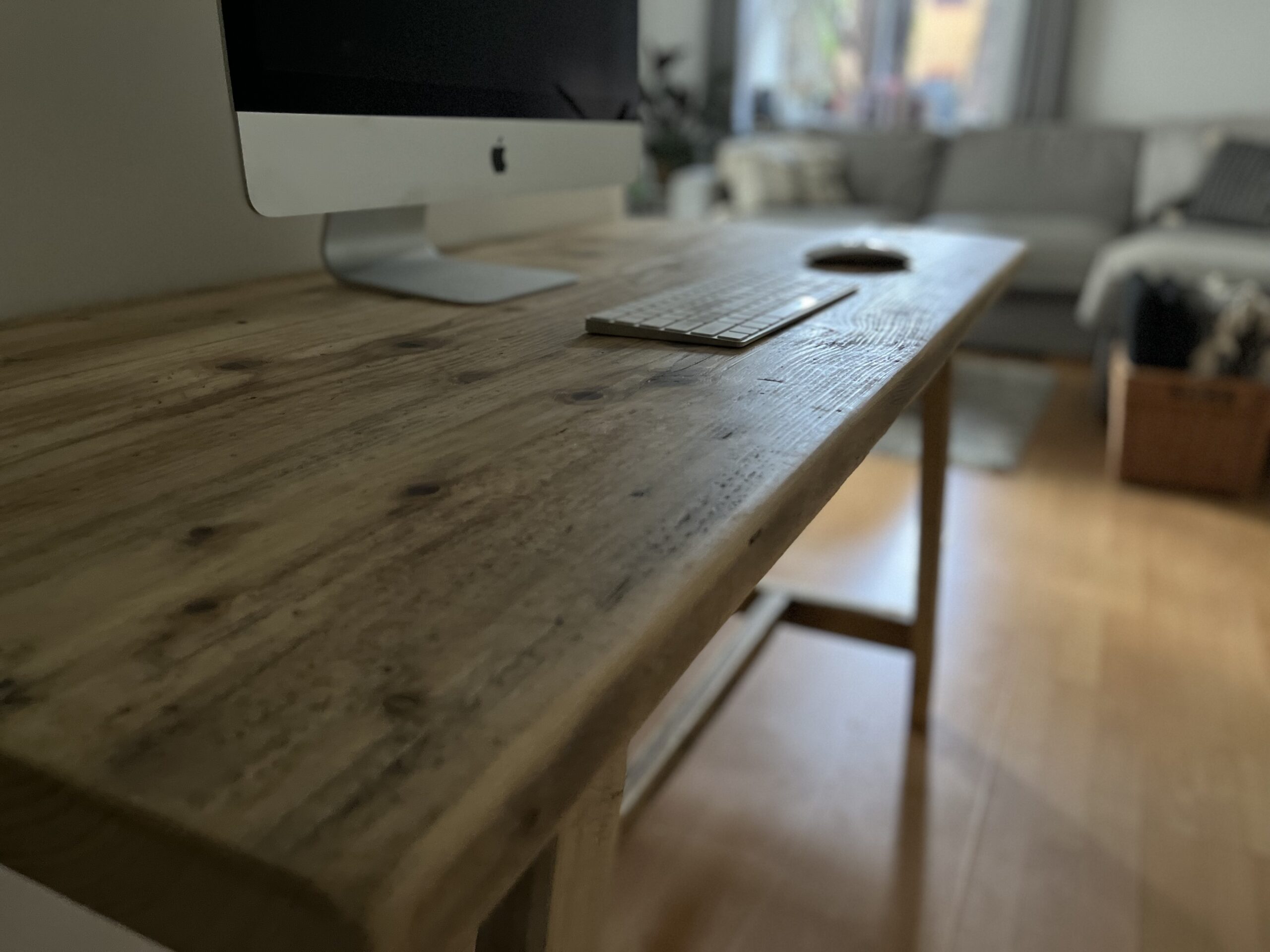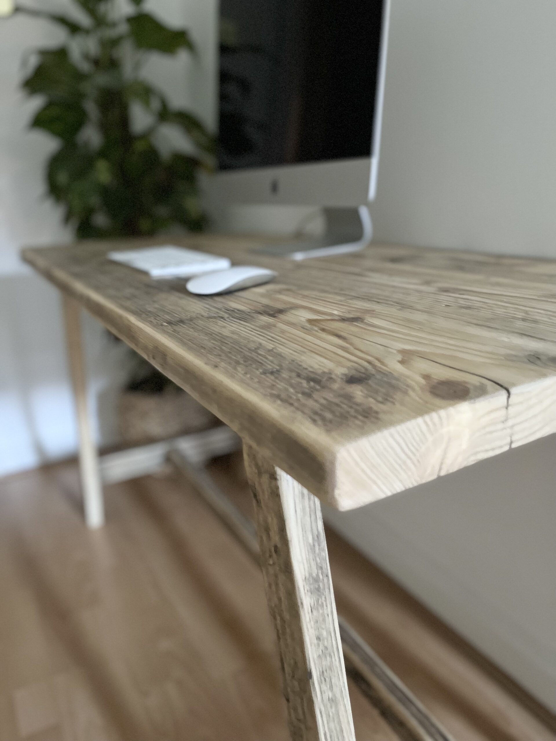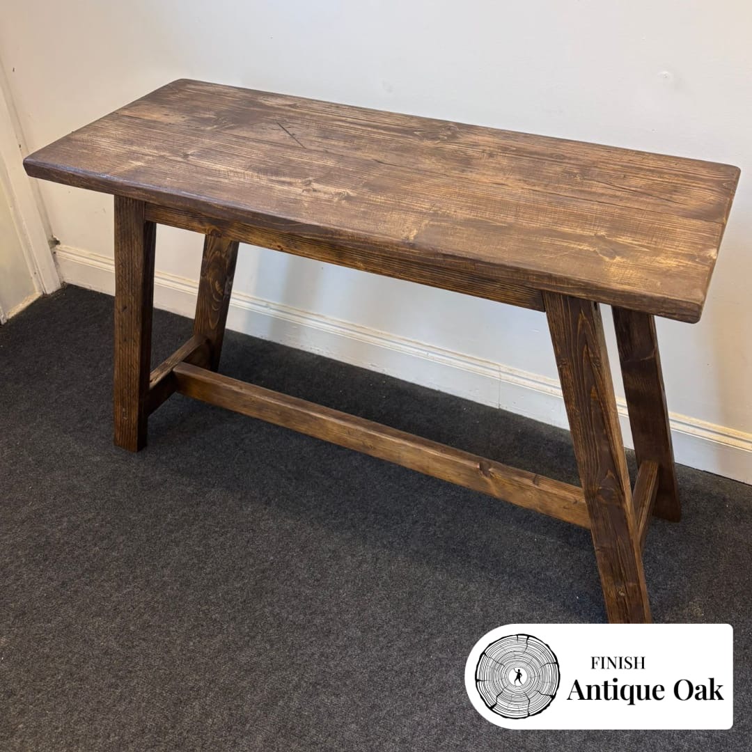 Your desk will be handmade to order from reclaimed pine wood and finished with your choice of Osmo tint, then coated in clear finishing oil. Choices are from; Clear, Natural, Honey and Amber. Main item pictured is the Natural option.