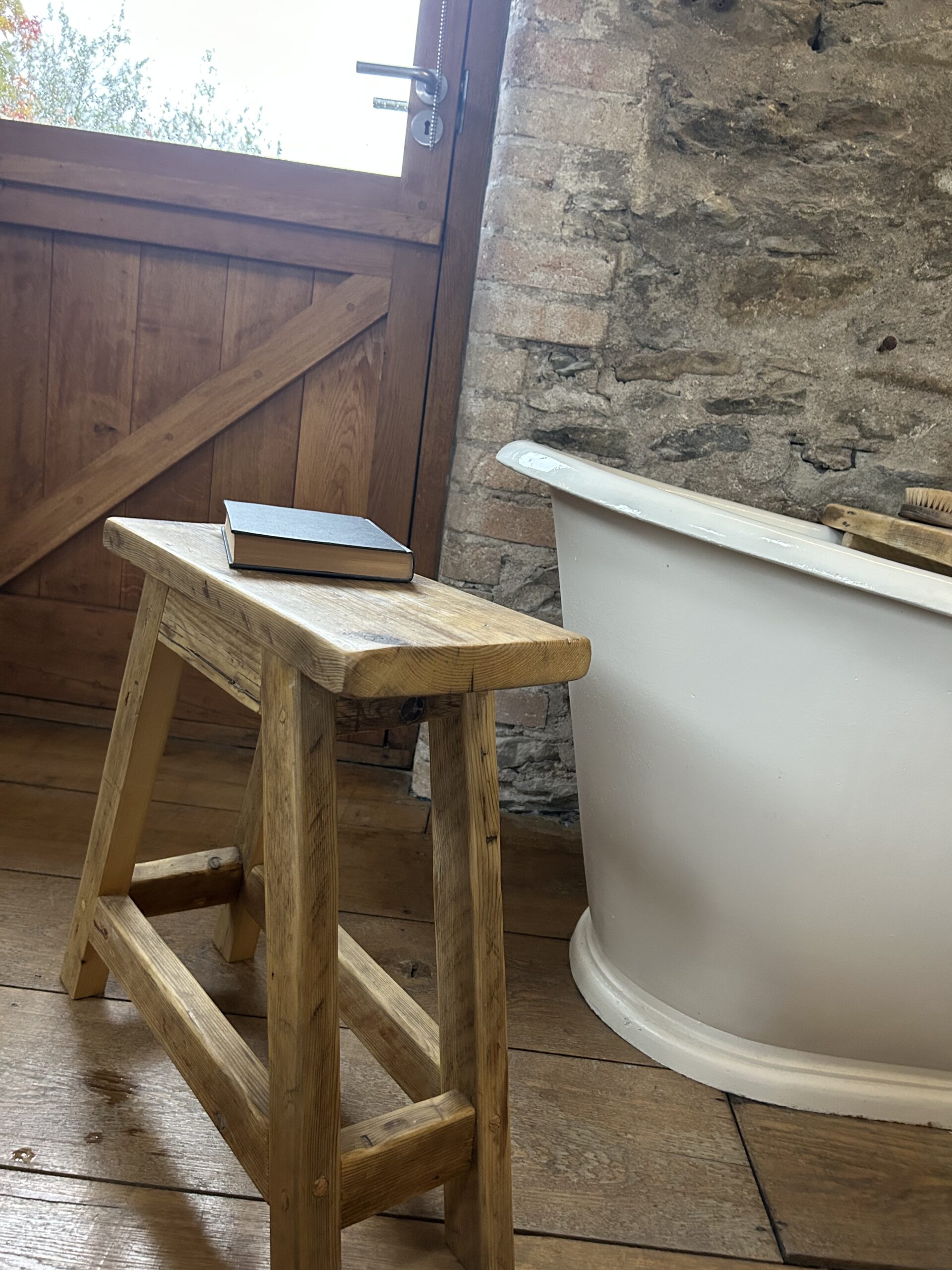 A rustic farmhouse milking stool handmade from reclaimed solid wood pine. The Merryoak is a charming and functional piece that can add a touch of rural simplicity to your home. Looks great as a side table, bedside table or centre piece. Handmade to order.